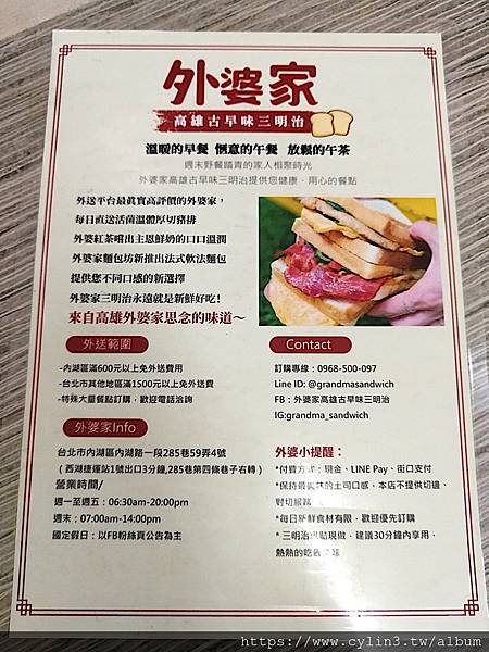 官方粉絲團:https://www.facebook.com/grandmahmsandwich/