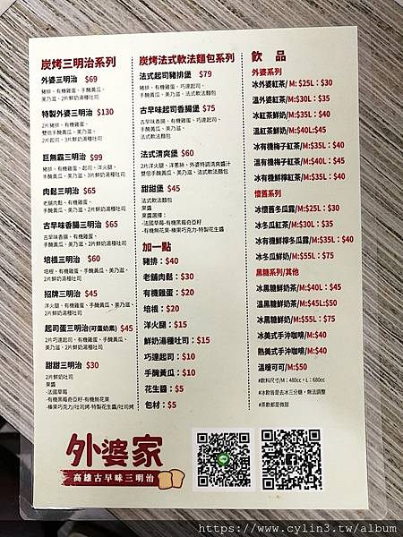 「外婆家高雄古早味三明治」其實不只是吃早餐而已,它營業時間頗長,你想當早餐、午餐、下午茶、晚餐吃都沒問題: