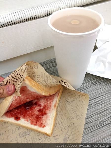 首先上桌的是:甜甜三明治(NT$30,法國草莓)與冰黑糖鮮奶茶(M: NT$40/L:NT$45)