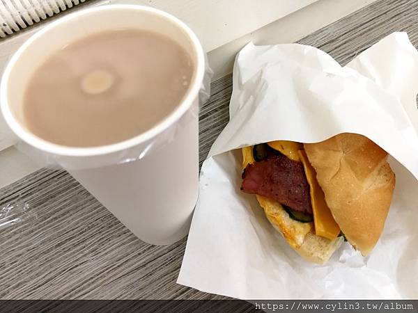 首先上桌的是:古早味起司香腸堡(NT$75)與冰紅茶鮮奶(M:NT$35/L:NT$40)
