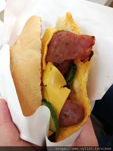 古早味起司香腸堡: 古早味香腸、有機雞蛋、巧達起司、手醃黃瓜、美乃滋、法式軟法麵包,我一定要稱讚一下古早味香腸,老闆切成薄片下去煎的恰恰,口感我好喜歡,香腸香氣在舌間化開,但不會油膩,更沒有可怕的豬肉味,吃到的是台式香腸的鮮甜,讓胖胖顰忍不到想大力推薦給大家!