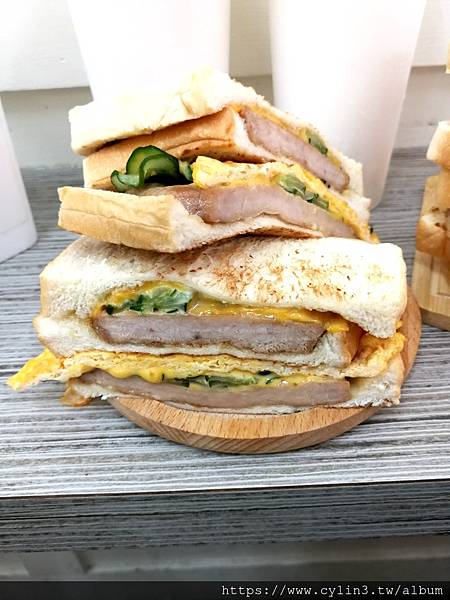 特製外婆三明治:2片豬排、有機雞蛋、雙倍手醃黃瓜、美乃滋、2片起司、3片鮮奶湯種吐司;有一種餓叫做外婆覺得你很餓,這份三明治就是外婆疼惜憨孫的心情吧~大食量的男生都吃得飽啊~