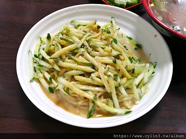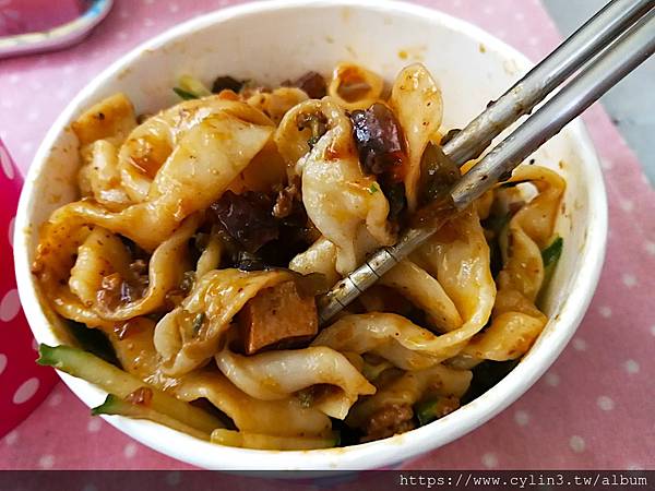 「現燙涼麵王」麵體部分提供了「拉麵」與「家常麵」兩種選擇,我喜愛吃寬麵,詢問店員後就在「家常麵」欄畫一了;「紅油皮蛋麵」屬於乾麵,享用之前先攪拌均勻,小黃瓜給的超大方的,拌的過程飛出來好幾塊,鹹辣滋味很好吃,幾乎沒有皮蛋味,但在口感上卻吃得到皮蛋蛋白Q彈與蛋黃的軟黏;本來覺得路程有些遠,但這一碗讓我意猶未盡,有衝動會回購喲~強力推薦大家也來品嚐看看!
