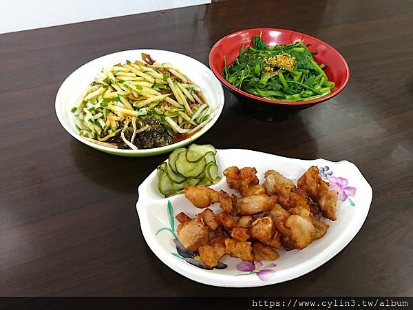 等待餐點製作過程,看到店家準備了幾道料理擺置一旁桌上,不知為何?胖胖顰忍不住偷偷拍照,做為下次來訪參考;後來看到一對母女踏入店內,店員上去招呼引導入座,感覺好似熟客。