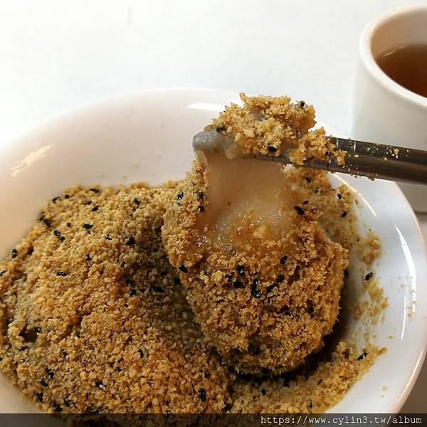 QQ麻糬(燒麻糬)筷子一夾,糯米的Q彈讓我忍不住先開動了,溫熱的麻糬沾滿著花生糖粉,不黏牙,入口除了花生濃郁的香氣,還有些微糯米香撲鼻~沒兩三下,一顆就被我消滅了,擔心兩顆份量太多或是太甜膩的朋友,網路上有人分享說也可以買單粒但費用為:NT$25,建議您們可以問問店家喔~