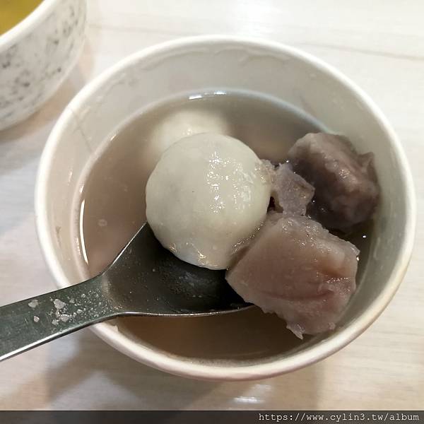 費工熬煮的大甲芋頭,自然香甜撲鼻,鬆軟綿密口感,暖呼呼的快把我融化了;店家手工自製的芝麻湯圓,皮Q薄厚適中,一口咬下,香濃的芝麻餡爆漿似的流出,整碗讓人超有幸福感滴~題外話,我發現店家包餡湯圓只有單一芝麻口味,忍不住詢問老闆娘,老闆娘說因為人手與時間都有限,加上購買與詢問芝麻口味的客人比較多,所以就只賣芝麻口味湯圓了,老闆娘也特別說他們湯圓因為是手工製作,每個形狀都不太一樣,做法也比較類似元宵做法,所以真正來說應該是要叫元宵才對。