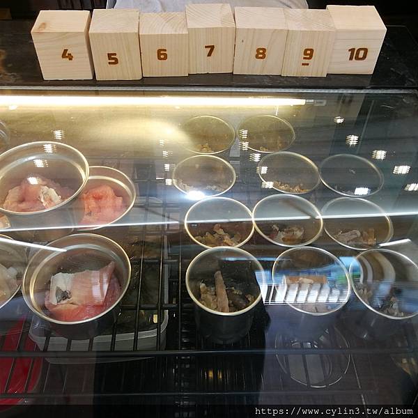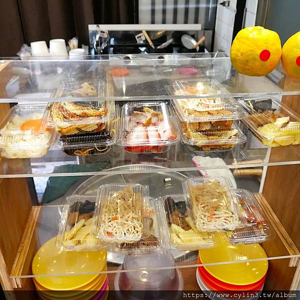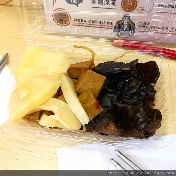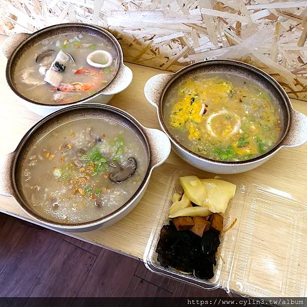 櫃檯處還有一個小菜櫃,一盒NT$35,客人可自行挑選想吃的小菜,小菜種類也很豐富,有台式泡菜、叉燒肉、豆乾海帶...等,我們挑選了一盒內有三種口味的:筍乾、滷豆乾、涼拌木耳,都很入味拌粥吃很提味,不知道是不是台北待久了,覺得好划算啊~不過這日,菁姊沒找到爬文部落客們推薦的老闆自漬小黃瓜,詢問老闆,老闆表示說前一日大賣,昨晚再製作還來不及入味,他得確定入味好吃才會拿出來販售,可惡~下回來,我要先預訂!
