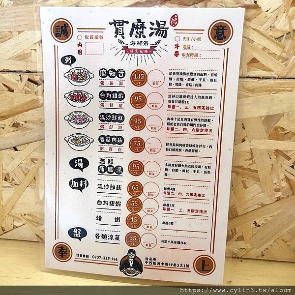 「老莫貫糜湯」販售的餐點就是對營養價值高的「糜粥(粥)」,是老闆非常花時間用心熬煮的;胖胖顰先分享菜單給大家看看,後面再一一介紹品嚐的餐點~店家菜單設計很有巧思,每個糜粥品項下方有詼諧幽默的註解(ex:粥澎湃),右側也有價錢與詳細的介紹。