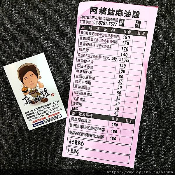 「阿婧姑麻油雞」在內湖開店約10多年了吧?!曾上過不少媒體,幾乎在內湖科學園區的居民與上班族都吃過,每次經過店內人氣喧騰,前幾天偶晚上19點半左右要去光顧,大大的鍋子連一滴湯都沒有了,跟老闆娘拿菜單參考,老闆娘還提醒說後面兩天中午外送都滿了喔~阿咧,也太誇張了吧!其實港墘捷運站附近大概還有2~3家麻油雞商家,但吃來吃去,我跟Janice就覺得我們比較喜歡「阿婧姑麻油雞」,下次有機會再跟大家分享他們新品「養身雞湯系列」。