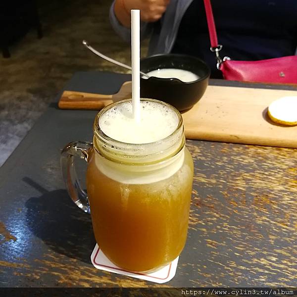 「茉香綠茶」滿大一杯的冰飲,同行的弟妹小清說茶香很濃厚,喝起來不苦澀,入喉回甘,飯後剛好清爽解膩。