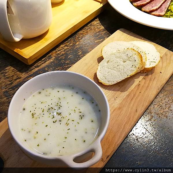 這是B套餐的濃湯+麵包,濃湯部分很香濃,沾著麵包吃也很適合,麵包部分雖然麵包是烤過的但並沒有烤太久,與常見酥脆的法國麵包也很不一樣,口感上是香軟輕柔滴。