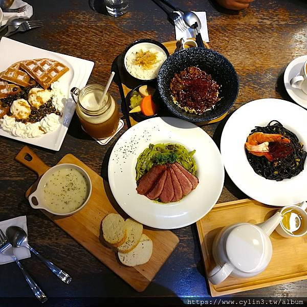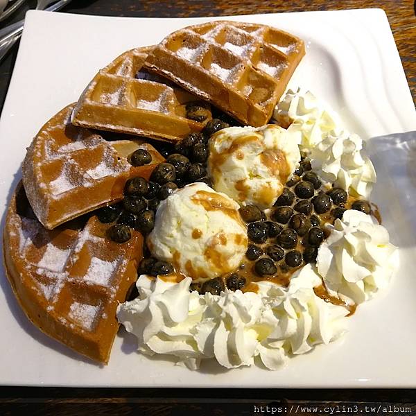 飯後再來一份甜點,這份「珍珠奶茶冰淇淋鬆餅」店員說也是他們招牌商品喔~烤的外酥內軟的鬆餅搭配小美香草冰淇淋與Q彈的珍珠一起食用,味道甜而不膩,讓人超滿足超幸福滴,唯一小小缺點就是這份「珍珠奶茶冰淇淋鬆餅」旁邊的奶油若是有其他顏色,拍照起來可能會更漂亮吸睛啦~