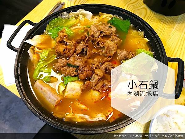 「小石鍋」是一家連鎖燒肉小火鍋店,「內湖港墘店」是去年(2020)4月疫情嚴峻期間開幕的,我個人滿佩服老闆的勇氣,所以開幕前幾天就去光顧了;小石鍋特別的地方在於他事先將肉以獨門醬汁醃漬後,輔以胡麻油、洋蔥片爆炒,湯底以昆布、蔬菜、柴魚片、豬大骨、雞胸骨熬煮,端上桌時已經先幫你把料(含燒肉)都放進鍋內烹煮了,配料不算多,味道很多層次,口味比較重鹹一點點,搭配主食剛剛好,飯後還有濃郁的冰淇淋可以自己DIY,吃完剛剛好8~9分飽,以百元多價位而言,CP值還不錯,有一種淡淡的幸福感,所以店家開業到目前生意都還不錯,用餐時間經過都看到不少人排隊喔~(可喜可賀,老闆撐過了疫情+開幕前半年!)