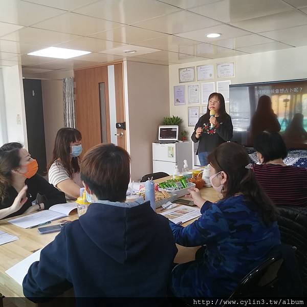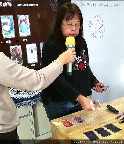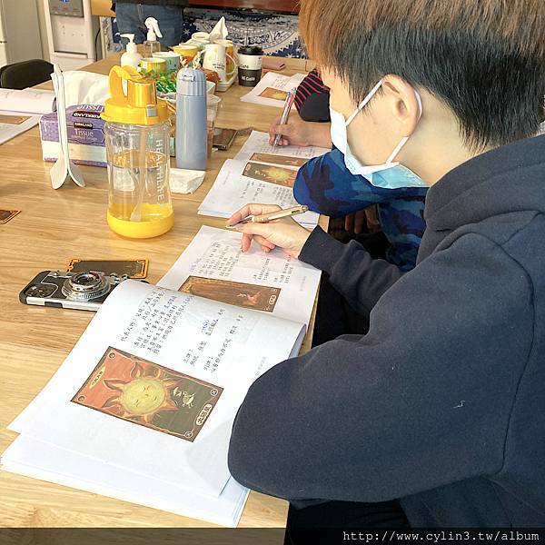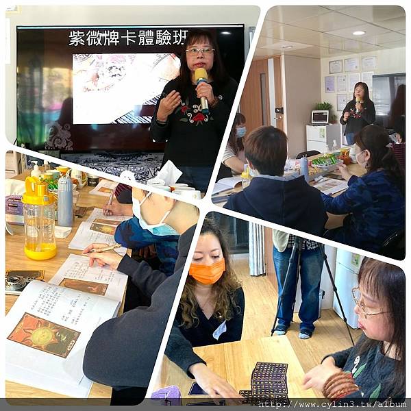 因為這日臨時有些學員無法到場,所以原本報名體驗班贈送的免費線上占卜一個問題,老師與助理們臨時就改為現場占卜,大家都忽然好嚴肅認真,提出一個最近遇到的問題來占卜,胖胖顰也問了一個工作方面的,老師與助理們除了說明「紫微牌卡」透露的訊息外,也有提供一些建議討論,大家都不斷的點頭道是。